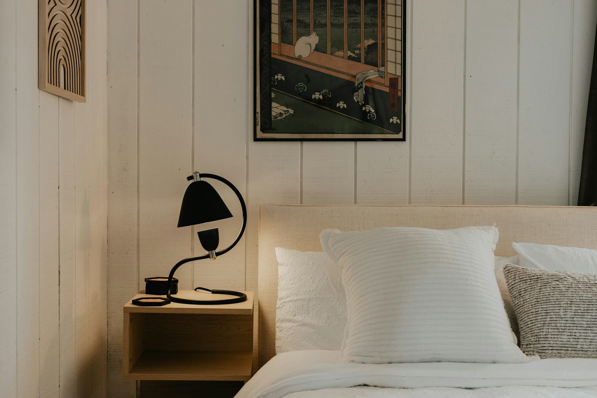 Brug lyse farver på vægge og lofter – de reflekterer lyset bedre og gør det muligt at bruge svagere pærer. Undgå at placere lamper, så de blænder, især ved sengen, hvor øjnene skal kunne slappe af.